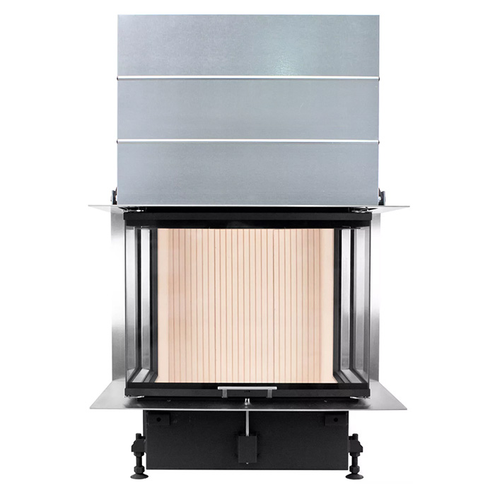 Топка изготовлена из цельного литого чугуна, без стыков и герметиков. Прочность чугуна увеличивает срок службы топки. Дрова закладываются в топку 2-3 раза в сутки. Имеется встроенный шибер. Такая топка обеспечивает теплом дом до 100 квадратных метров за 3-4 часа.