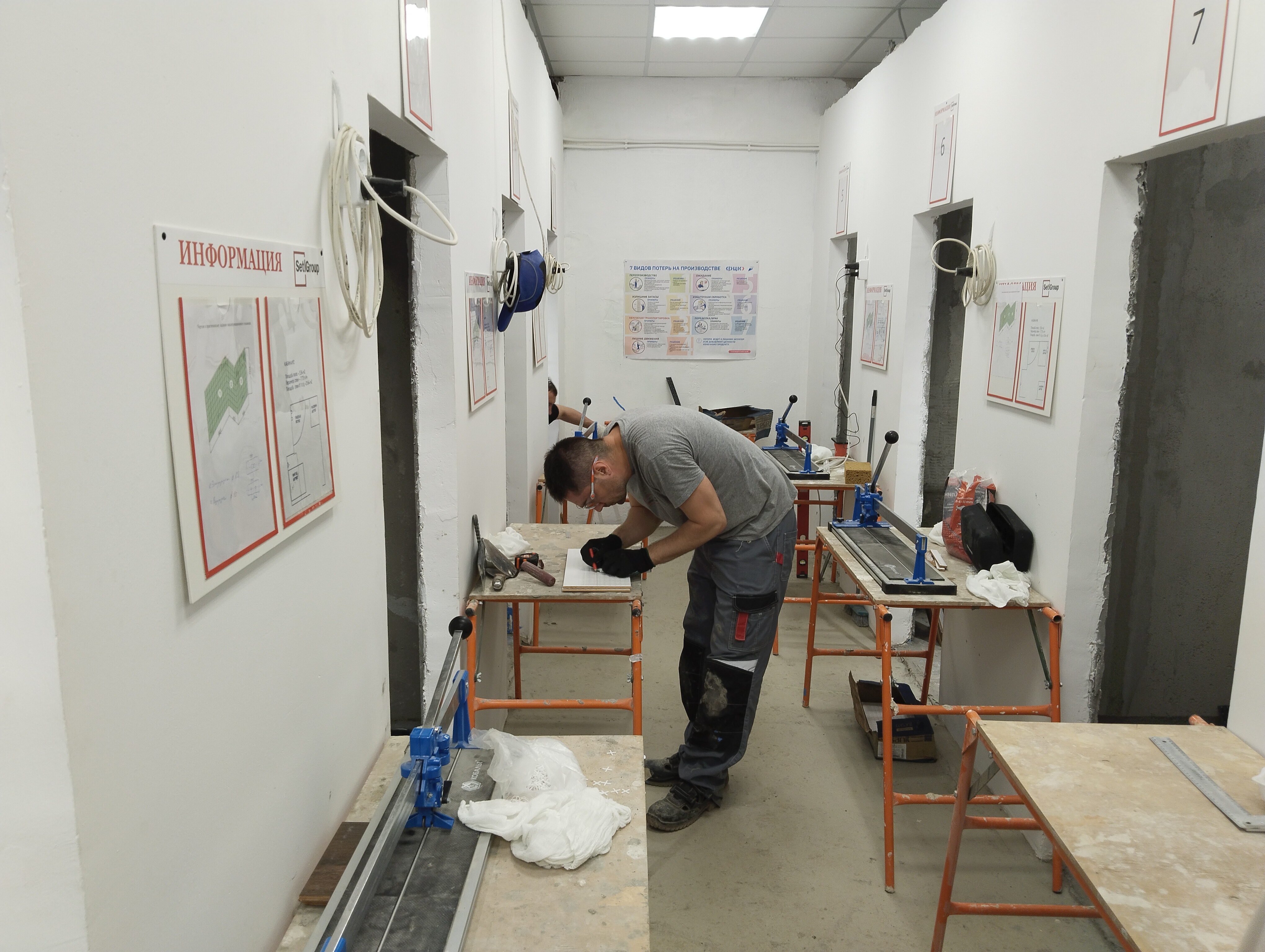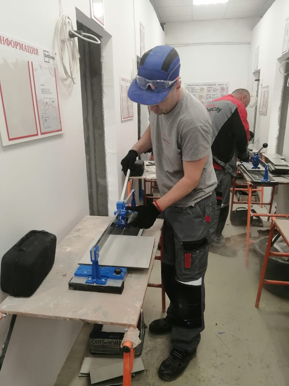 Группа по отделке помещений совместно с Колледжем метростроя проводит обучение по программе облицовщик-плиточник на современной, оборудованной учебной площадке.